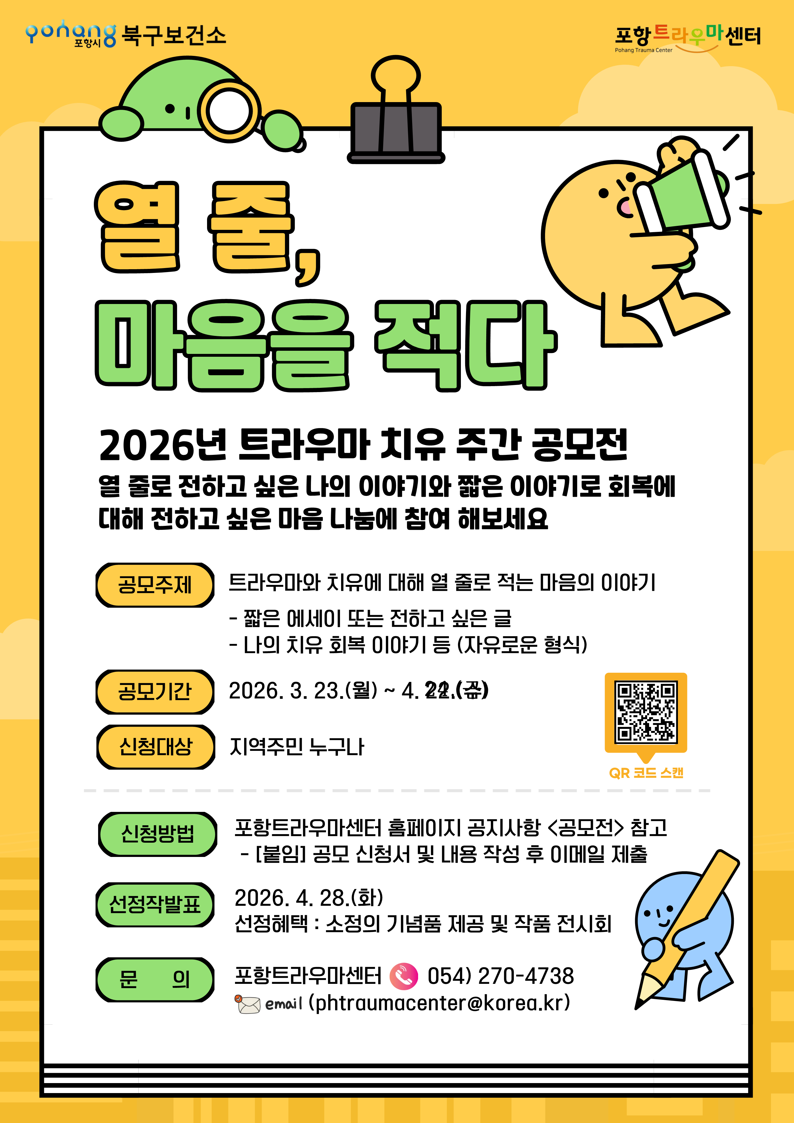 2026년 트라우마 치유 주간『열줄, 마음을 적다』공모전