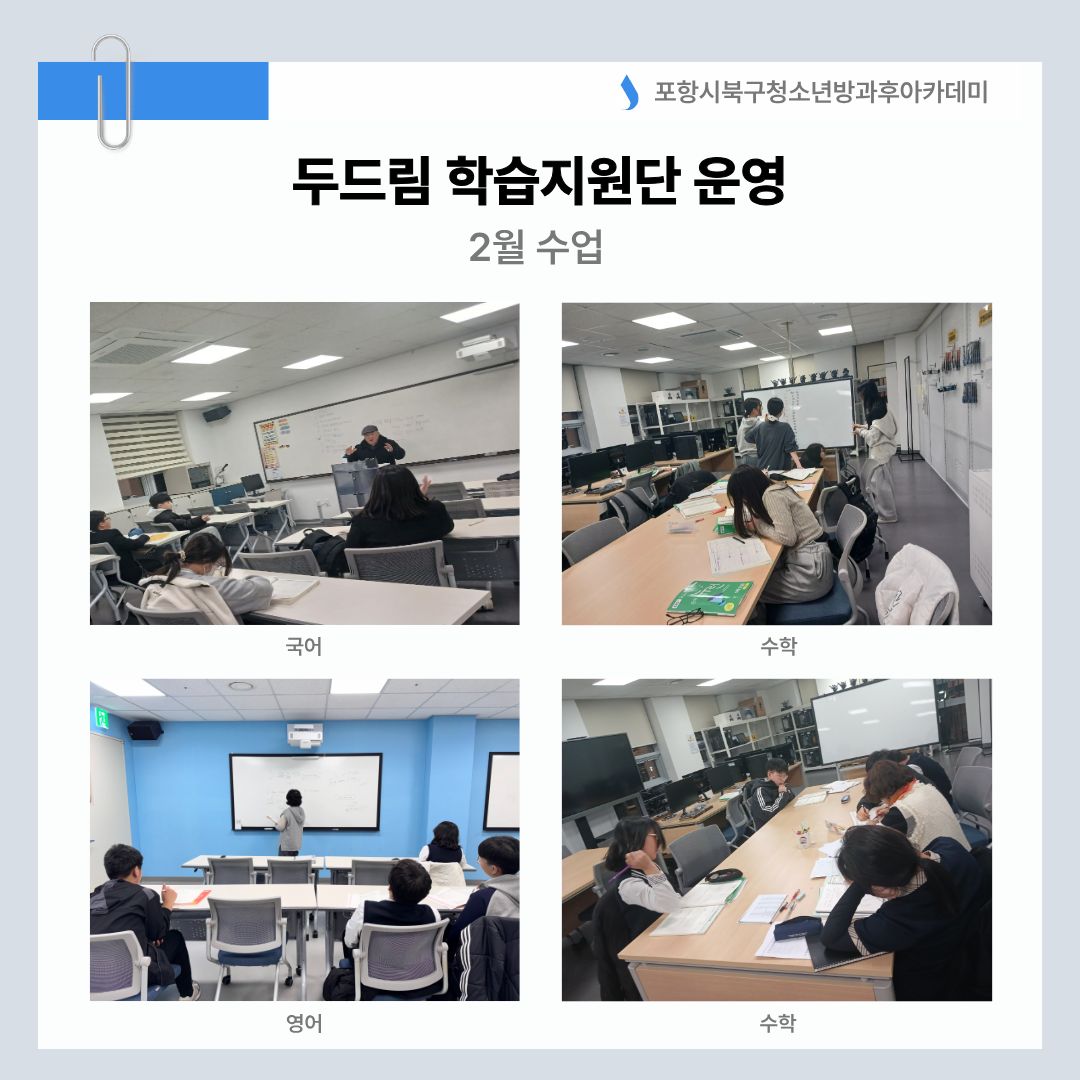 포항시북구청소년방과후아카데미는 2월, 두드림(Do Dream) 학습지원단과 함께 따뜻한 첫걸음을 내디뎠습니다!
