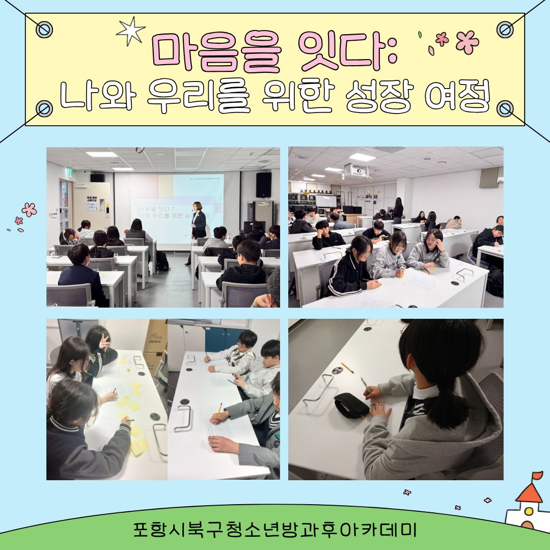 포항시북구청소년방과후아카데미는 ‘마음을 잇다: 나와 우리를 위한 성장 여정’ 프로그램을 통해 의미 있는 시간을 가졌습니다!