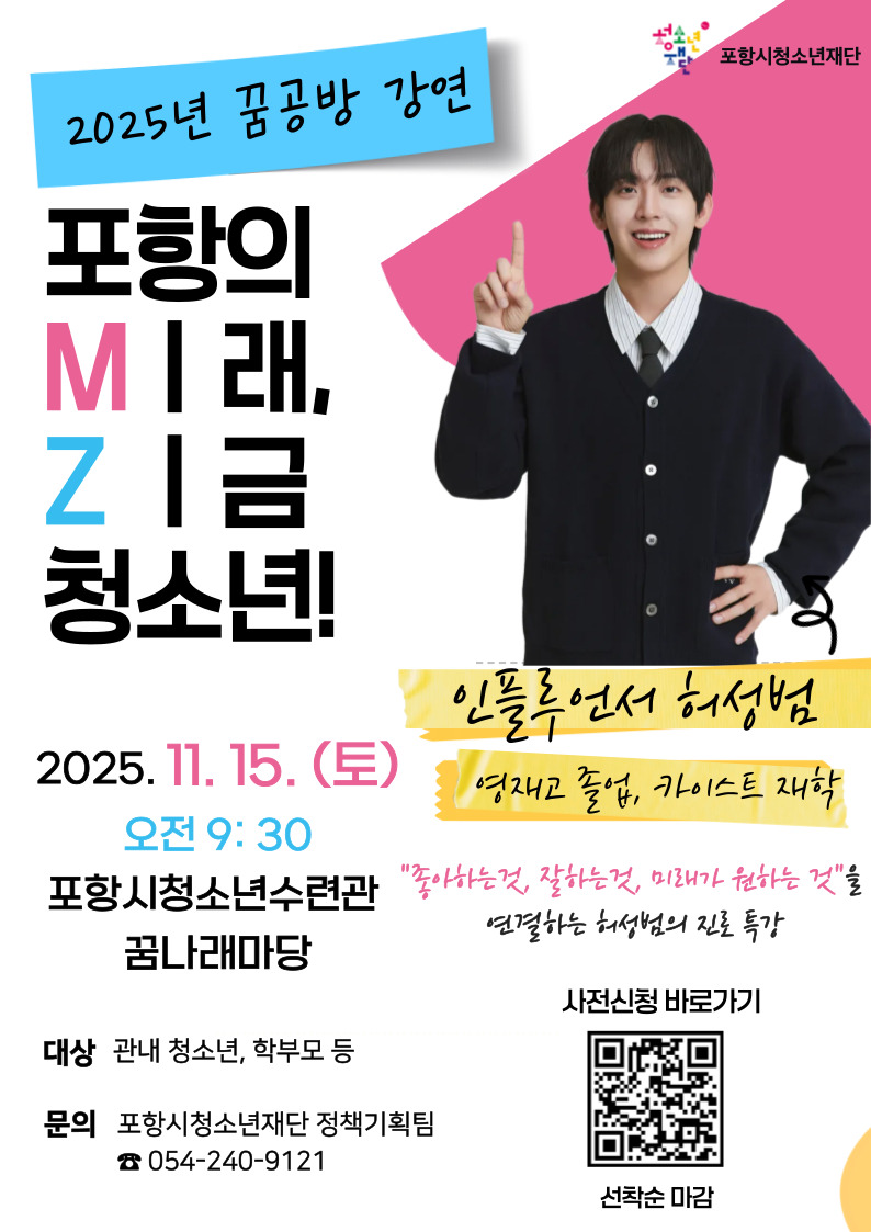 2025년 꿈공방 강연 '포항의Mㅣ래, Zㅣ금 청소년' 신청 안내
