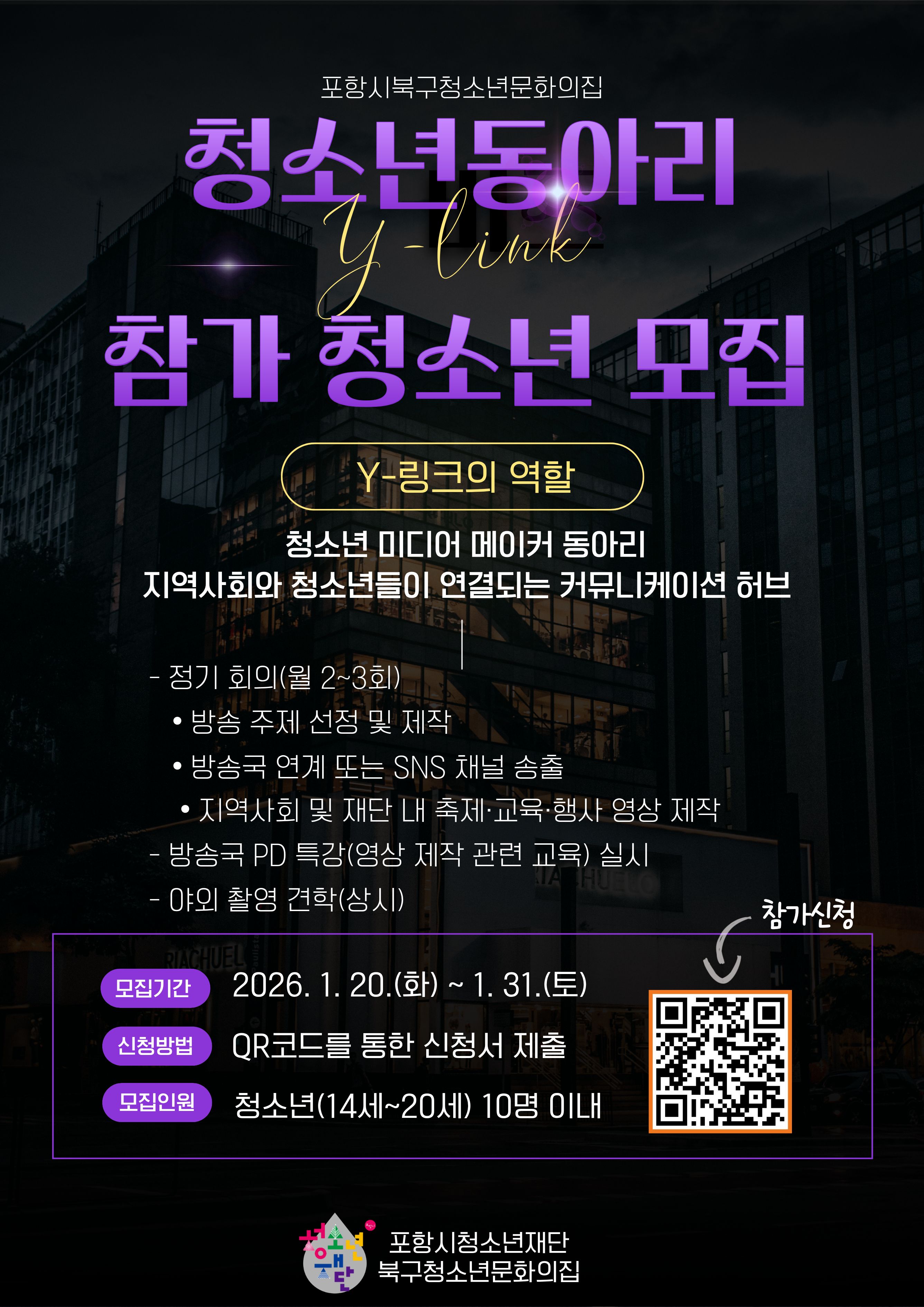 <2026>청소년미디어동아리 Y-링크 참가 청소년 모집>