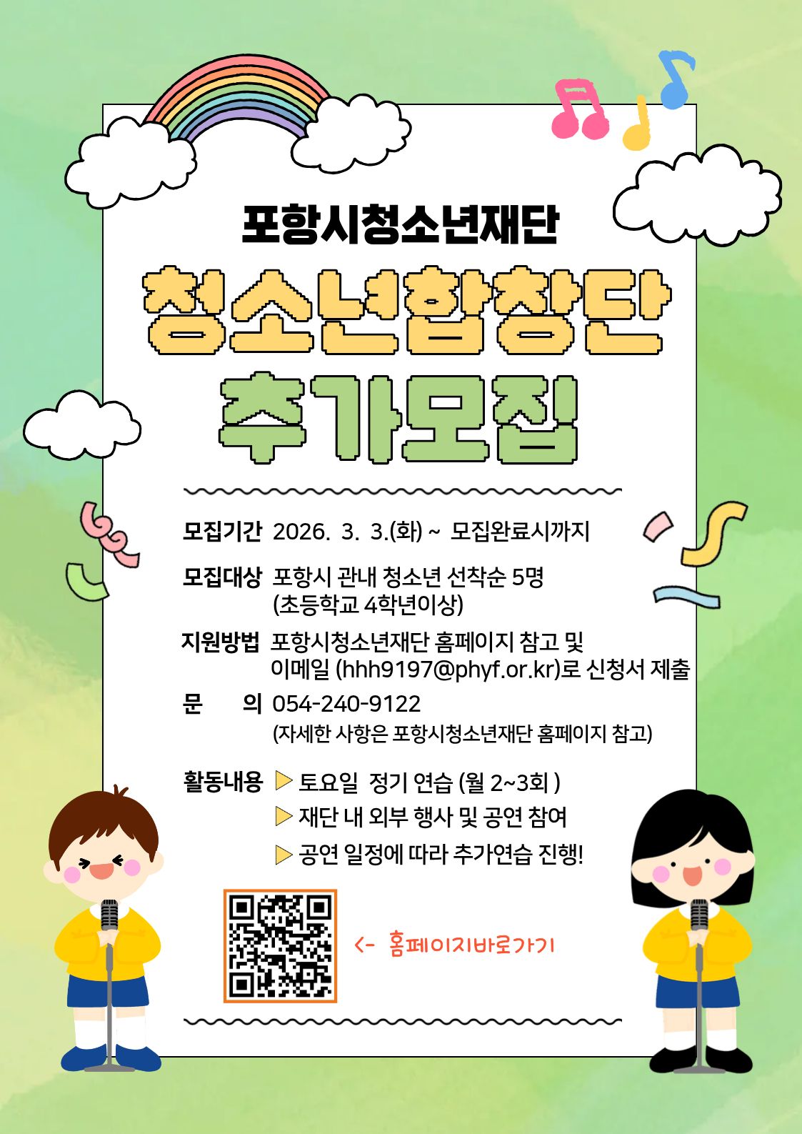 2026년 포항시청소년재단 청소년합창단 추가 모집공고