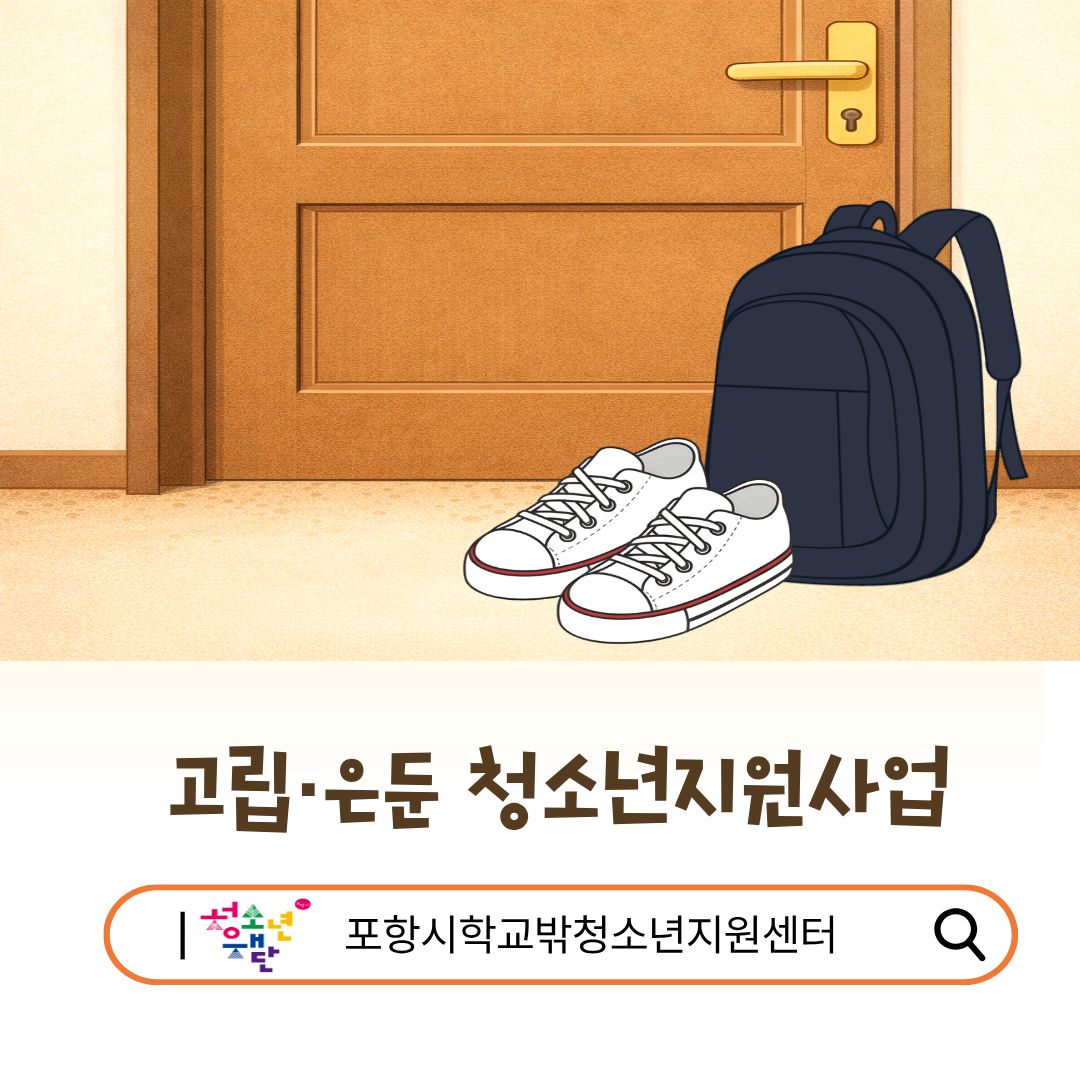 포항시학교밖청소년지원센터에서는 사회적 고립과 은둔으로 어려움을 겪고 있는 청소년들이 일상으로 한 걸음 나아갈 수 있도록 「2026년 고립·은둔 청소년 지원사업」 참여 청소년과 가족을 모집하고 있습니다.
