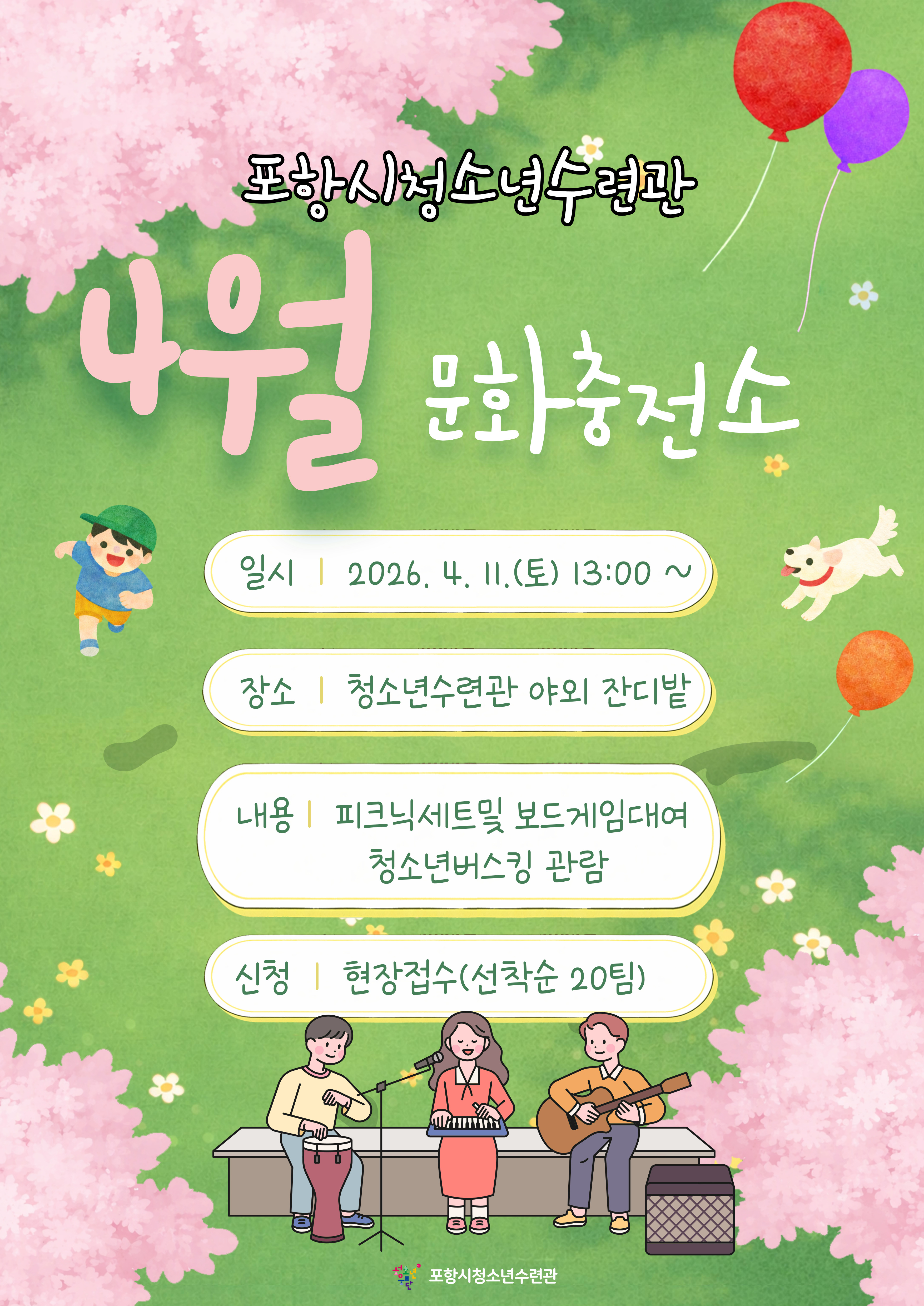 오는 4월 11일 청소년수련관에서 가족피크닉을 운영합니다 !