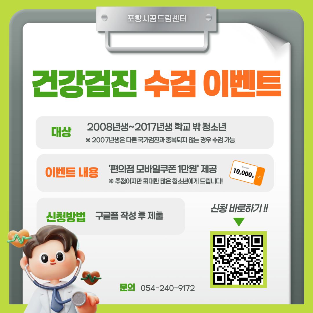 2026년 포항시학교밖청소년지원센터 건강검진 수검 이벤트 안내