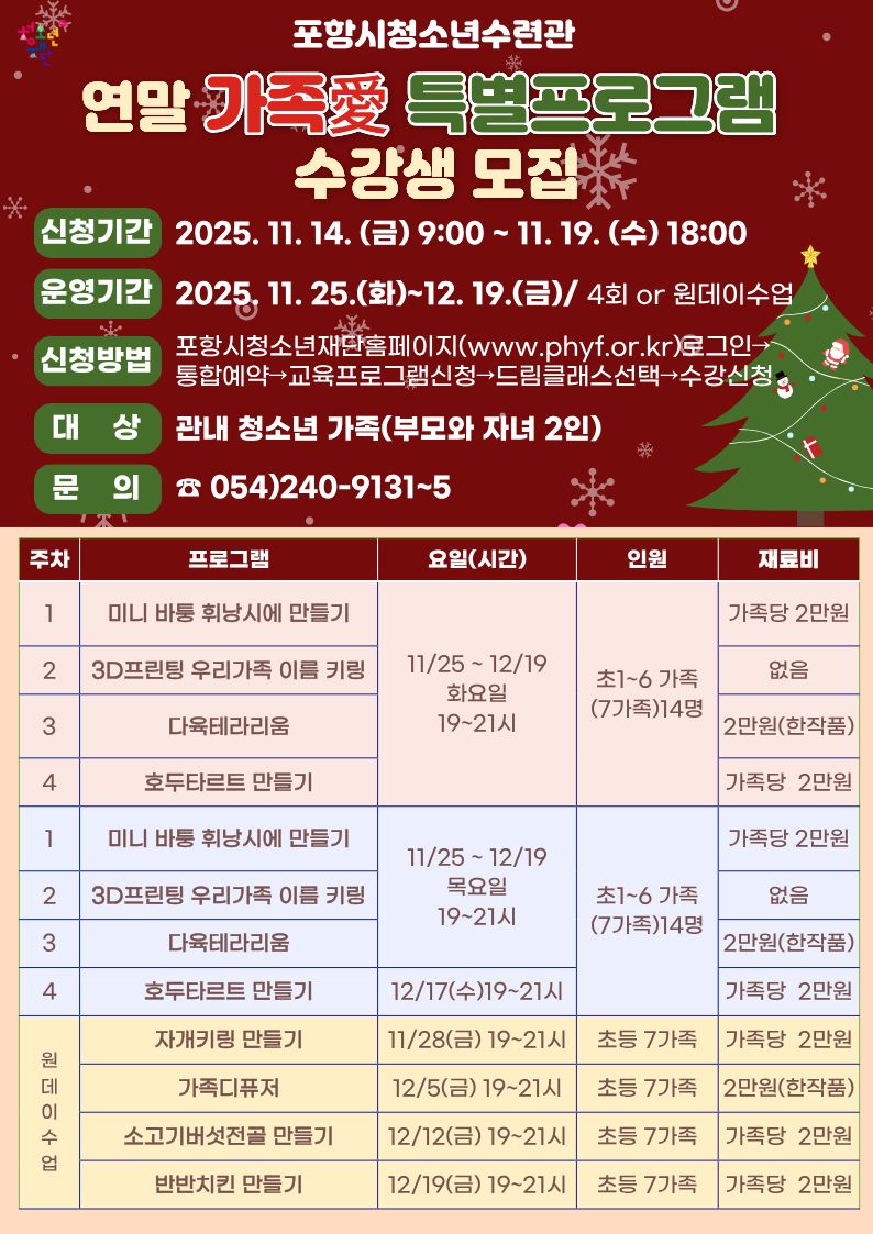 ⊙ 운영기간: 25. 11. 25.(화)~12.19.(금) / 4회 or 원데이수업