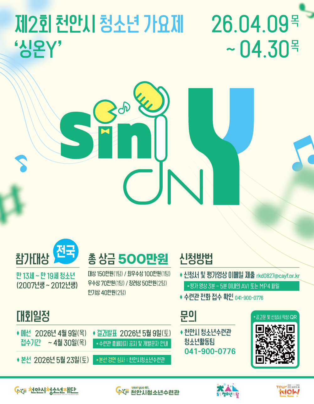[천안시청소년재단] 제2회 천안시청소년가요제 ‘싱온Y’ 참가자 모집