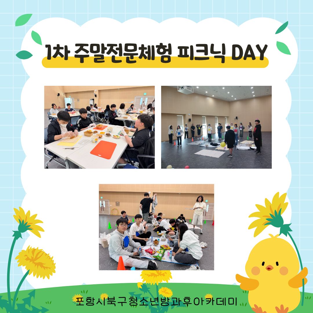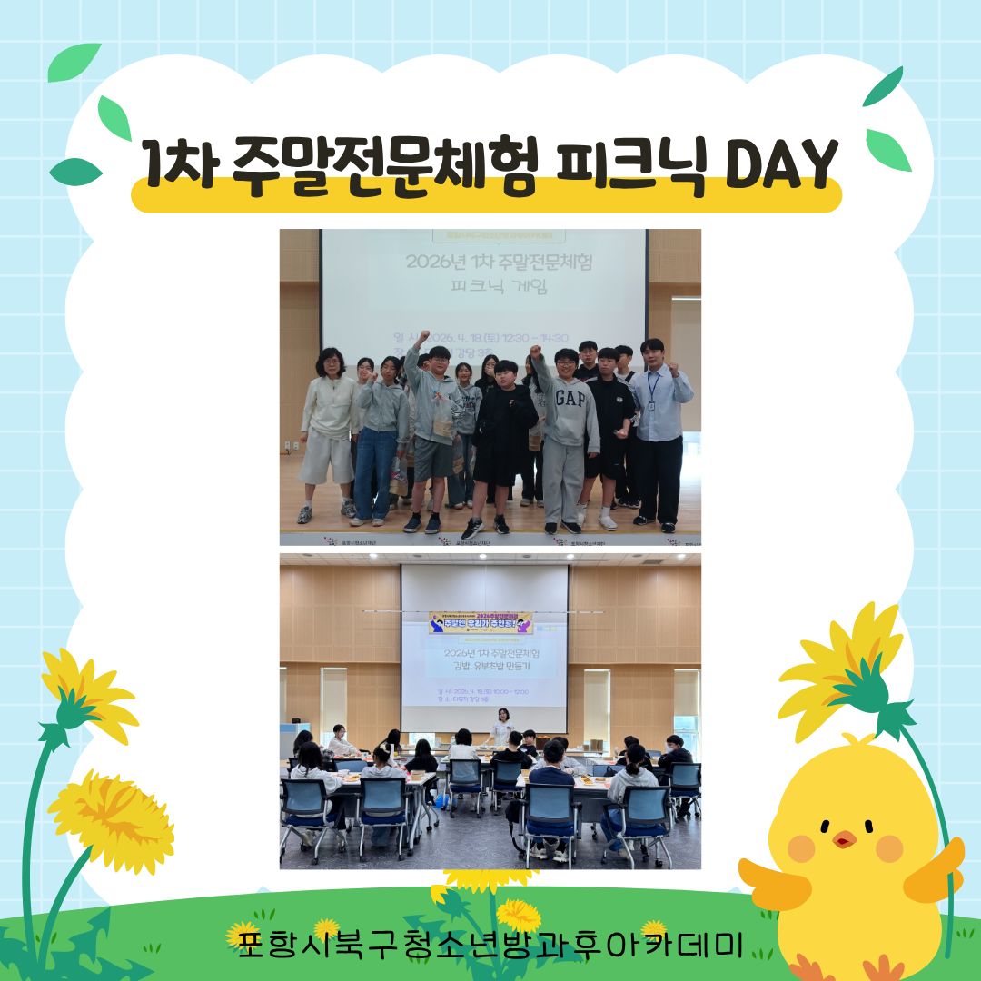 포항시북구청소년방과후아카데미는 18일, 청소년 20명을 대상으로 ‘2026년 1차 주말전문체험 피크닉 DAY’를 운영했습니다!