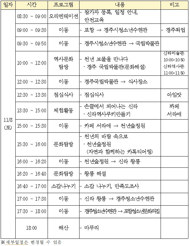 * 장 소: 경주시 일대(일정표 참고)