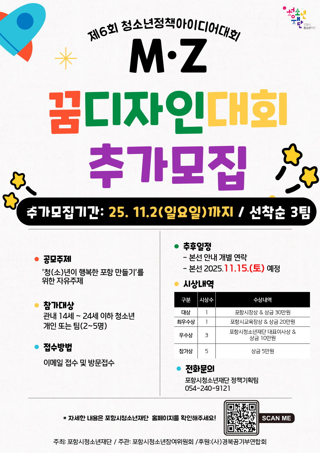 2025년 꿈공방 강연 '포항의Mㅣ래, Zㅣ금 청소년' 신청 안내