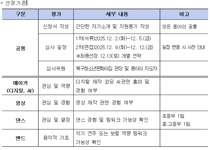 ◦ 최종 선정 : 2025. 12. 13.(토)