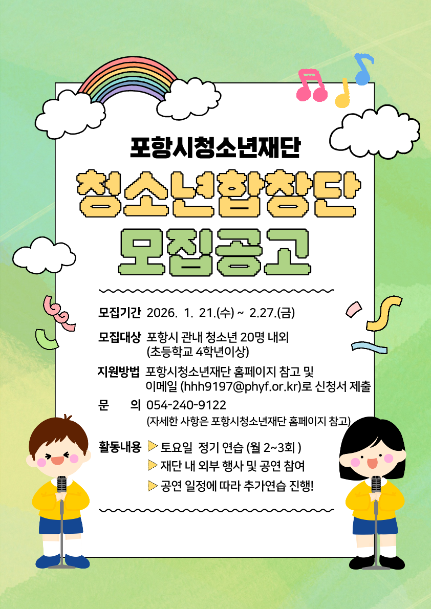 2026년 포항시청소년재단 청소년합창단 모집공고