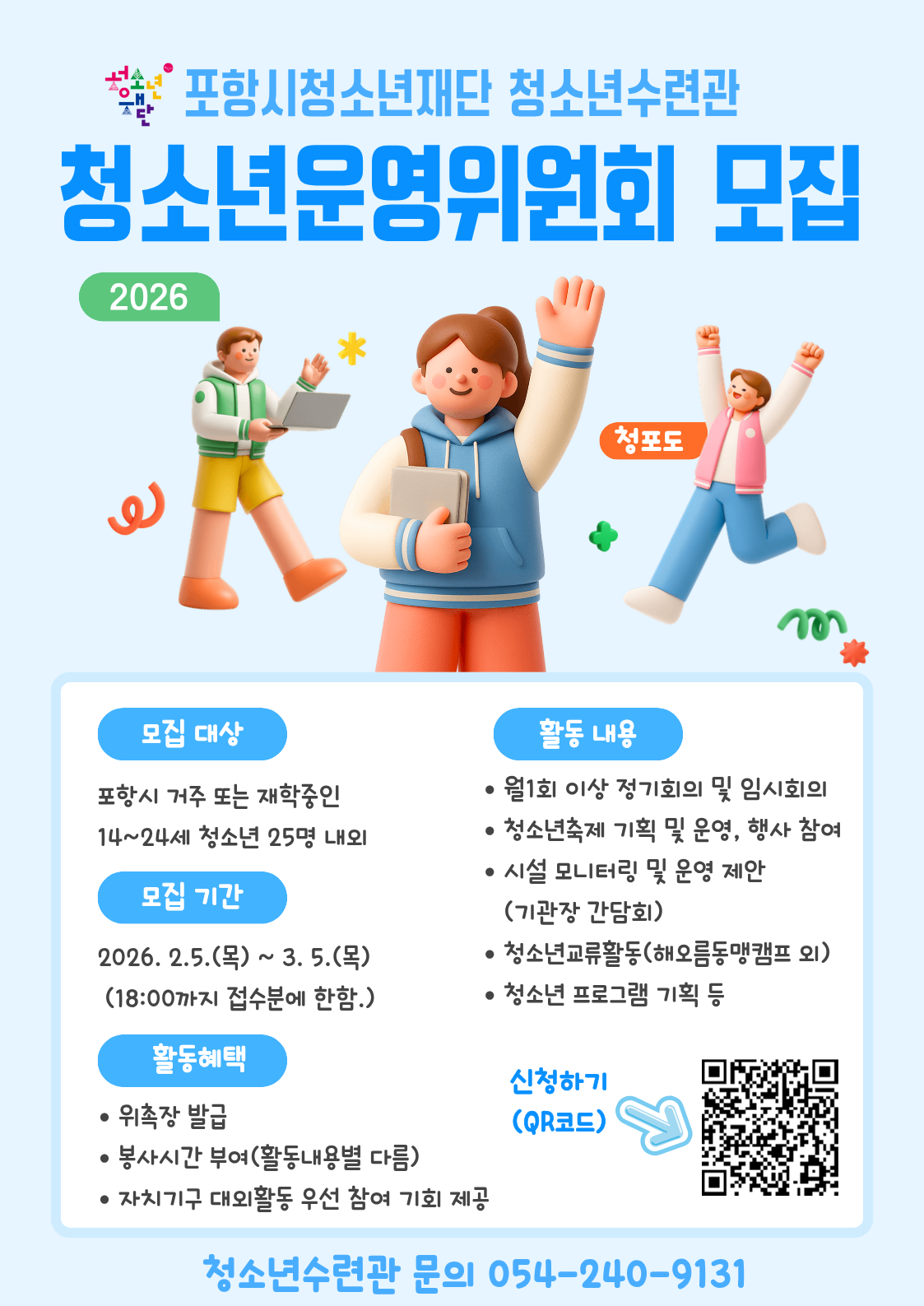 2026년 포항시청소년수련관 제23기 청소년운영위원회 청포도 위원을 모집합니다!!~