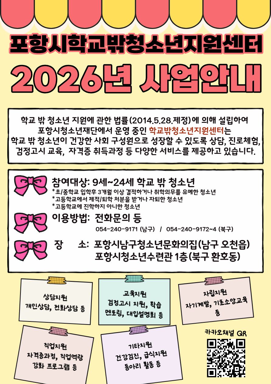 2026년 포항시학교밖청소년지원센터 사업 안내