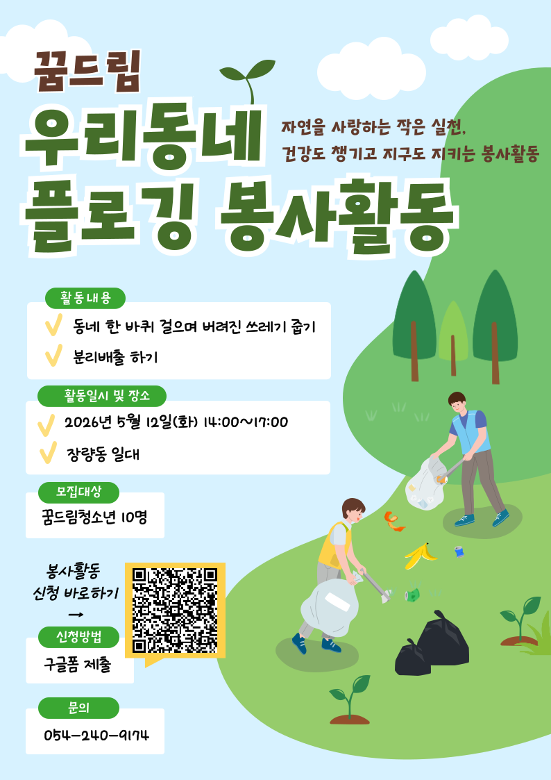 꿈드림 우리동네 플로깅 봉사활동 참가자 모집